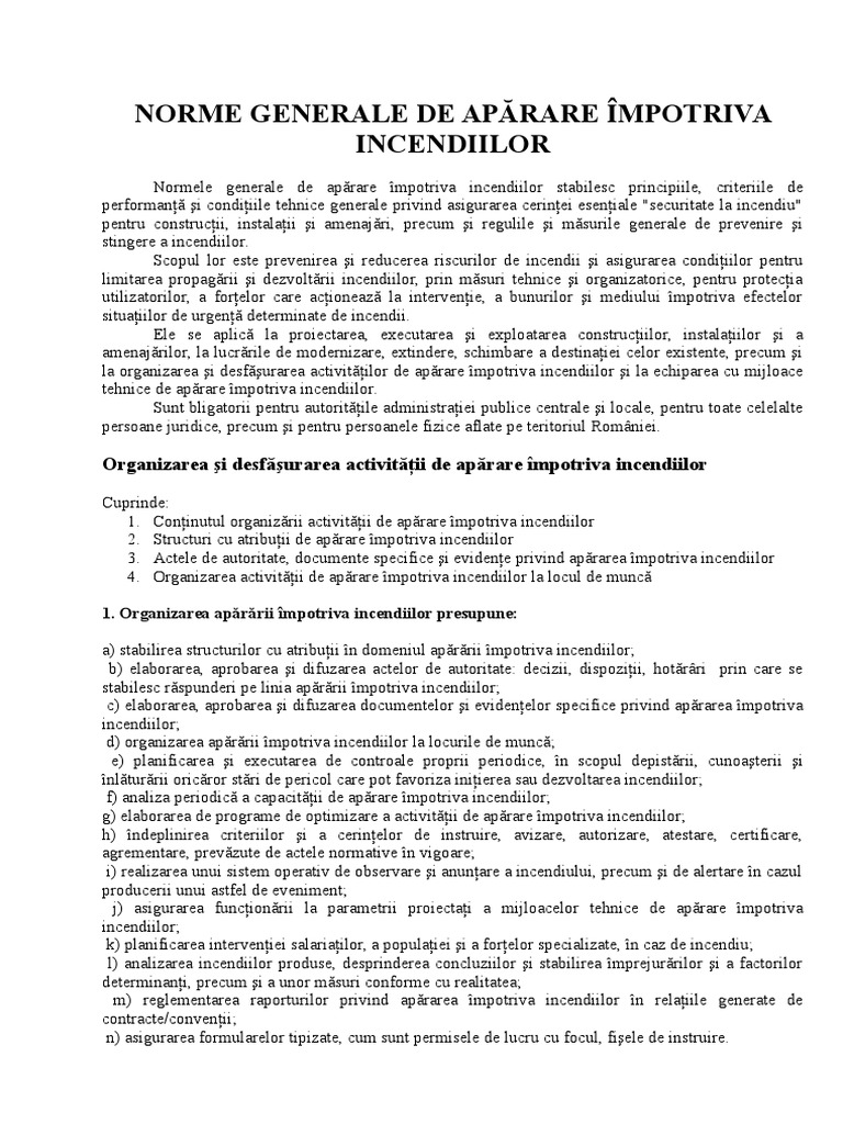 Normelor Generale De Apărare Impotriva Incendiilor