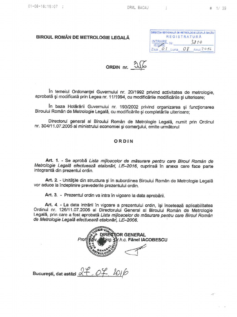 Le 2016 Ordin 356 Din 27 07 2016 Lista Tarife Etalonari