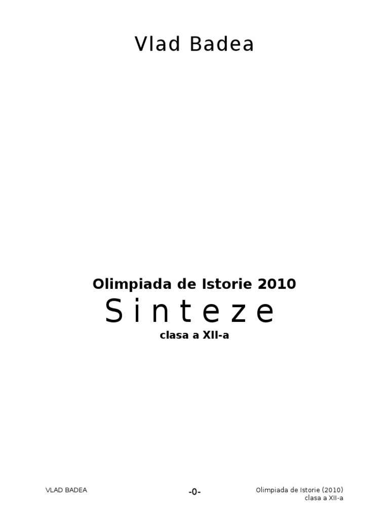 Vlad Badea Olimpiada De Istorie 2010 Sinteze Xii