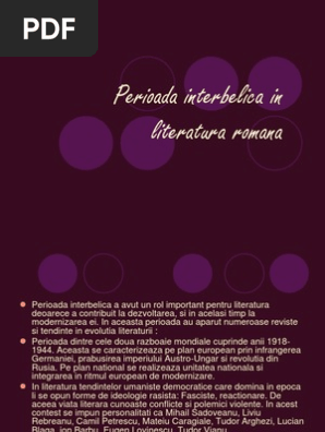 Perioada Interbelica In Literatura Romana