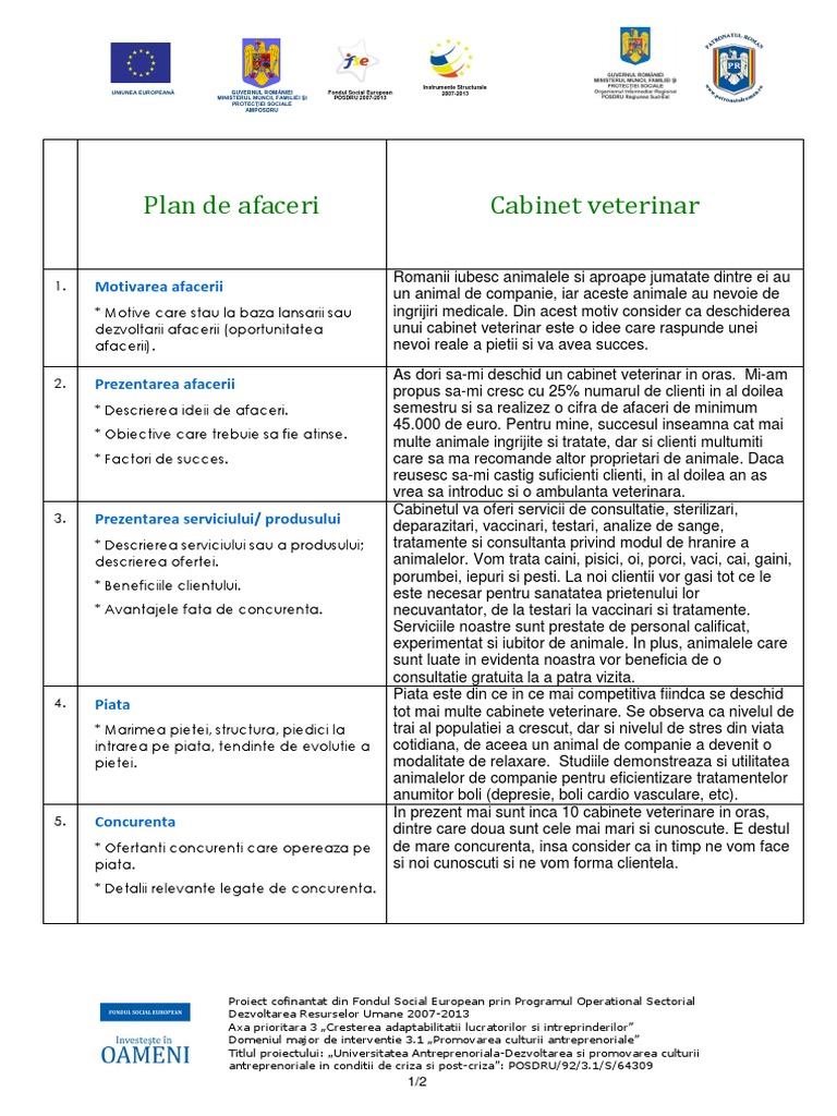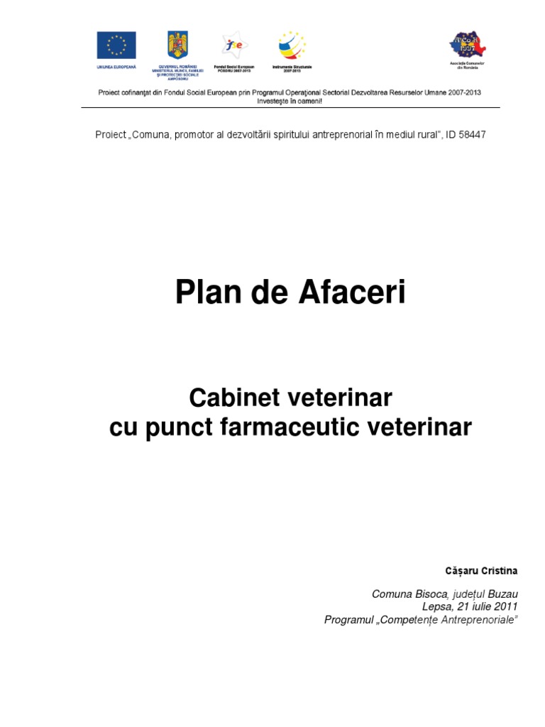 Plan De Afaceri Cabinet Veterinar Proiecte Ro