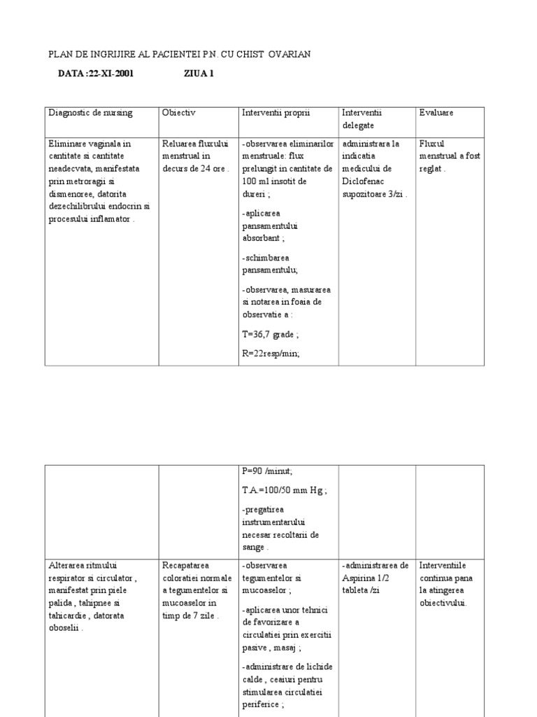 Plan De Ingrijire Chist Ovarian