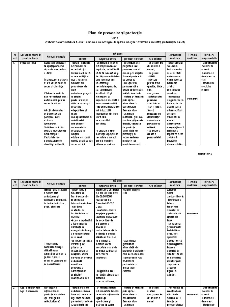 Model Plan De Prevenire Si Protectie General