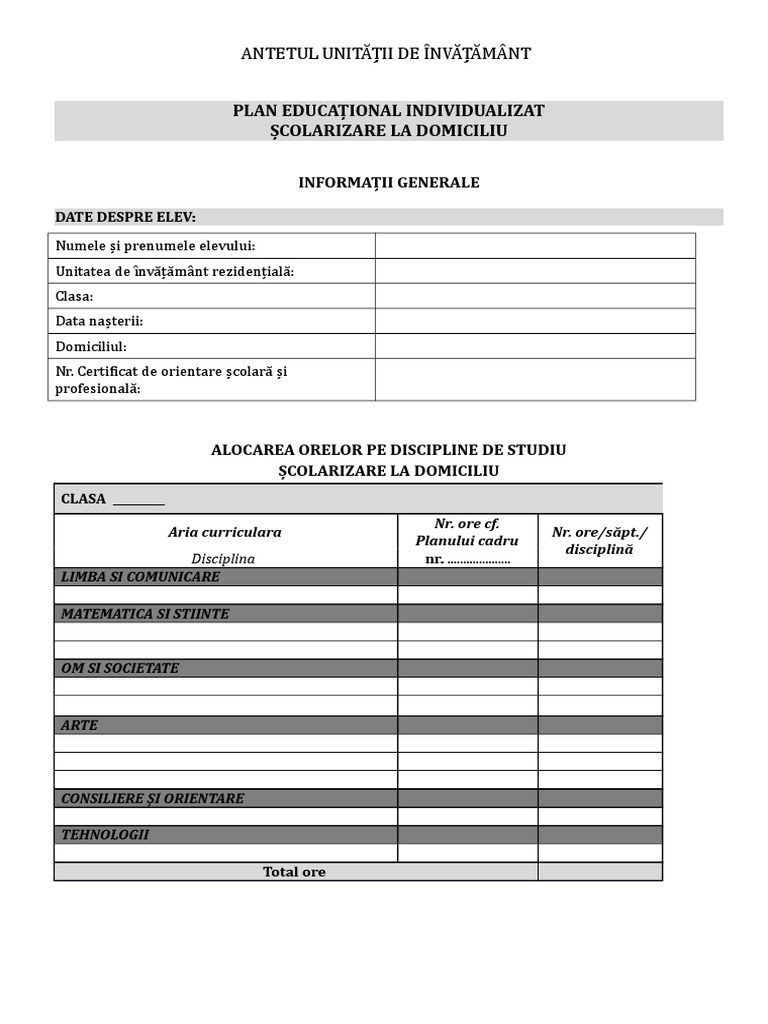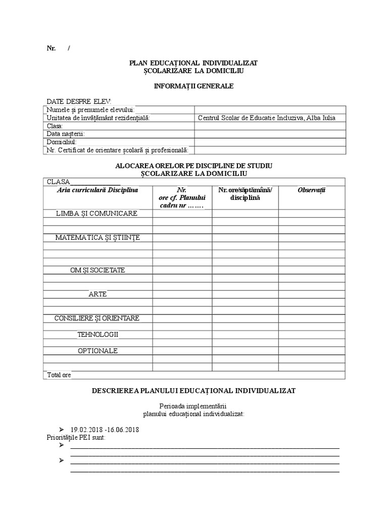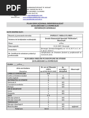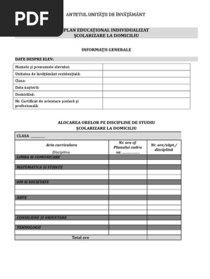 Plan Educational Individualizat Scolarizare La Domiciliu