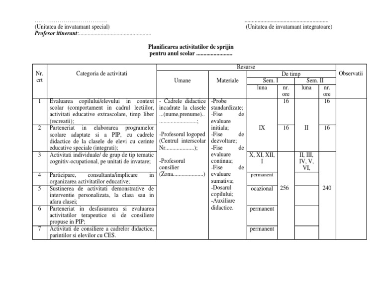 Model Planificare Anuala