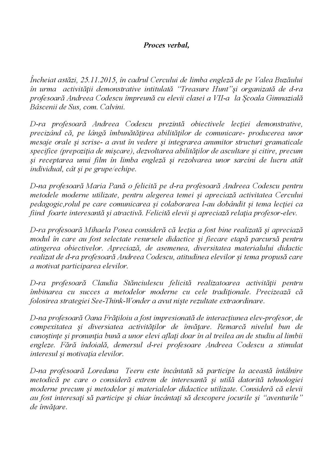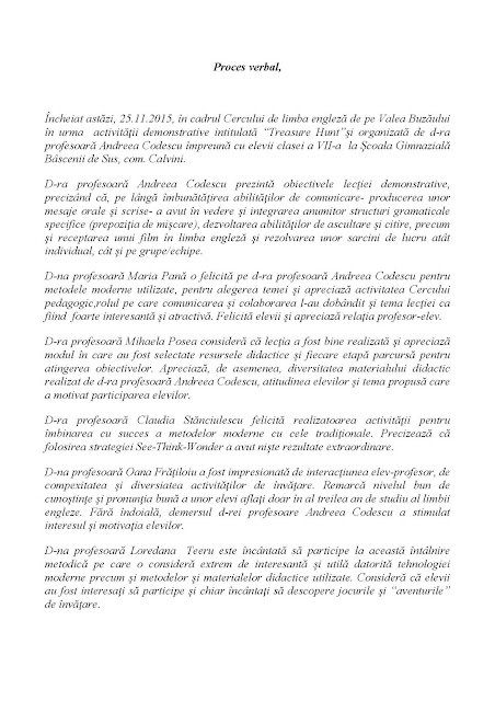 Teachers Of English On The Buzau Valley Proces Verbal Lectie Demonstrativa 25 11 2015
