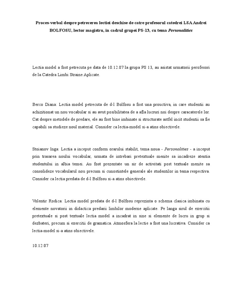 Procesverbal Lectie Deschisa 2007 1 Doc