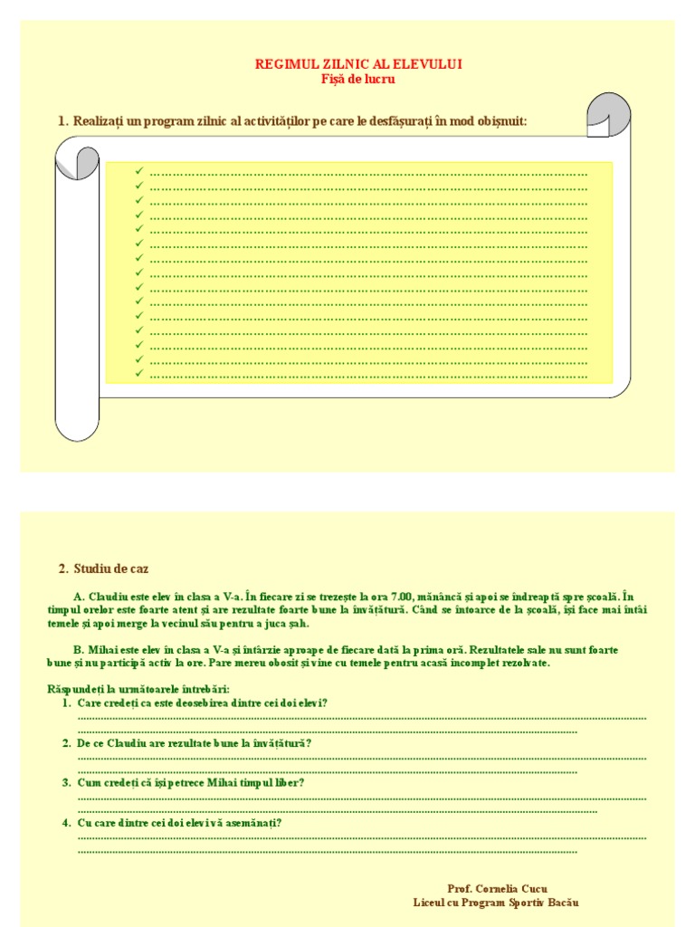 Totul Despre Mine Programul Meu Zilnic Materiale Didactice Dezvol