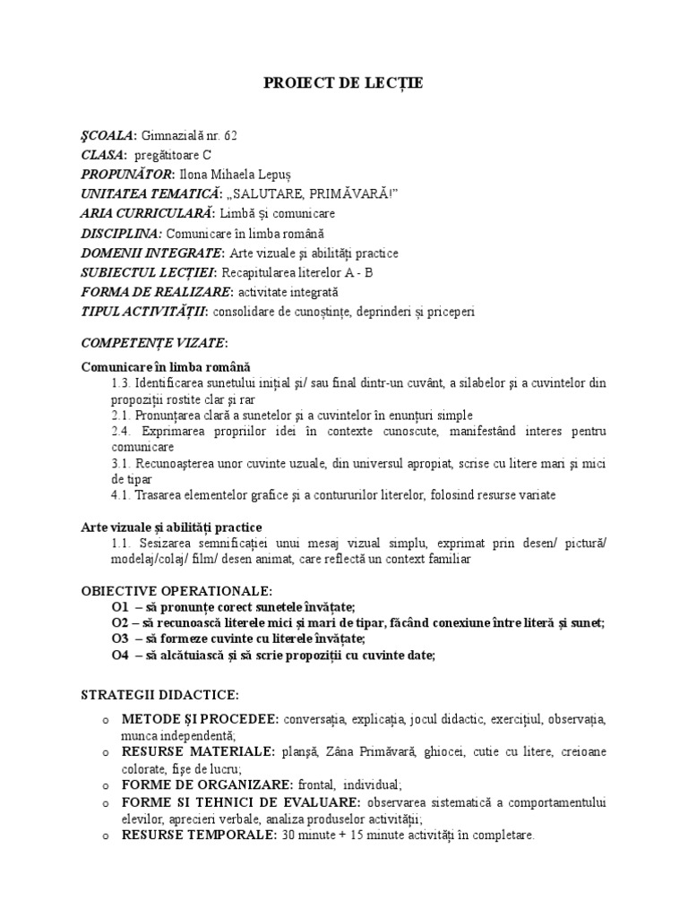 Pdf Proiect Didactic Integrat Anamaria Pesclevei Academia Edu