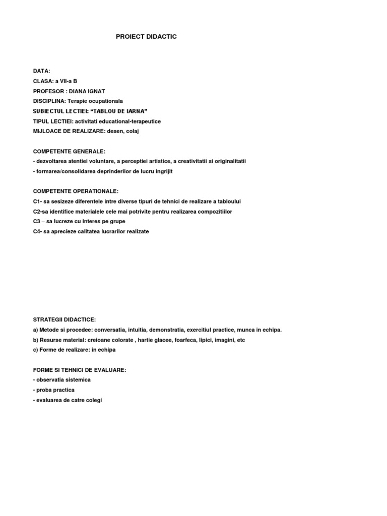 Proiect De Lectie