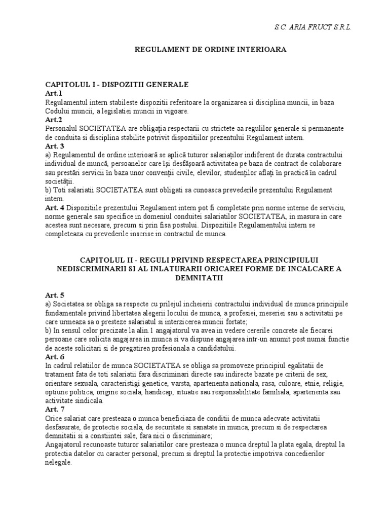 Regulament De Ordine Interioara