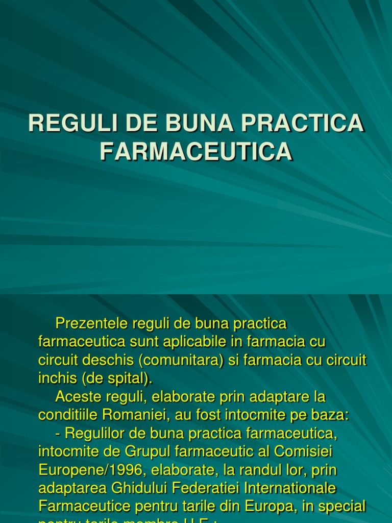Reguli De Buna Practica Farmaceutica Tocilar Ro