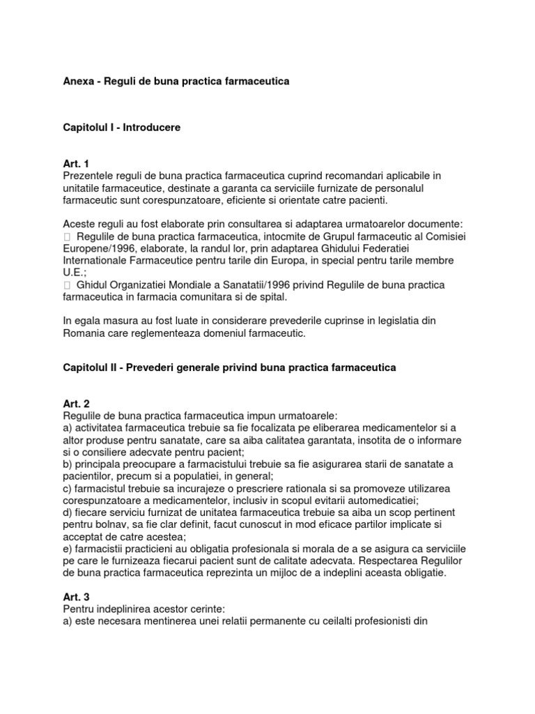 Legislatie Reguli De Buna Practica Farmaceutica