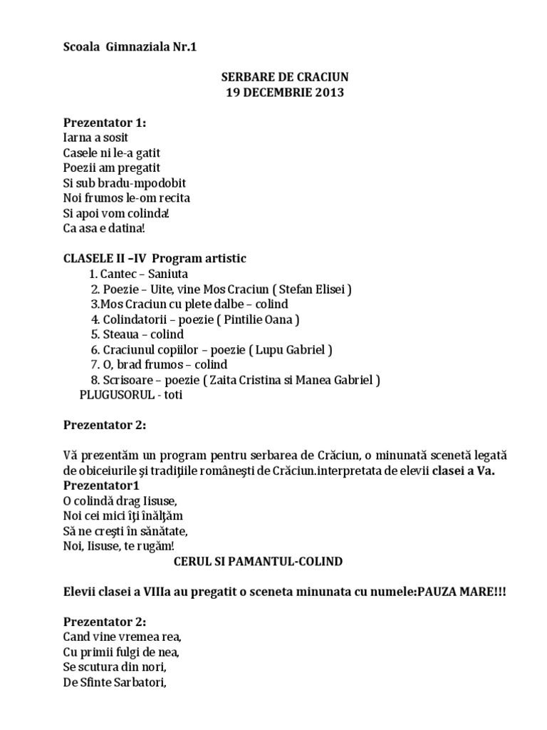 Program Serbare De Craciun