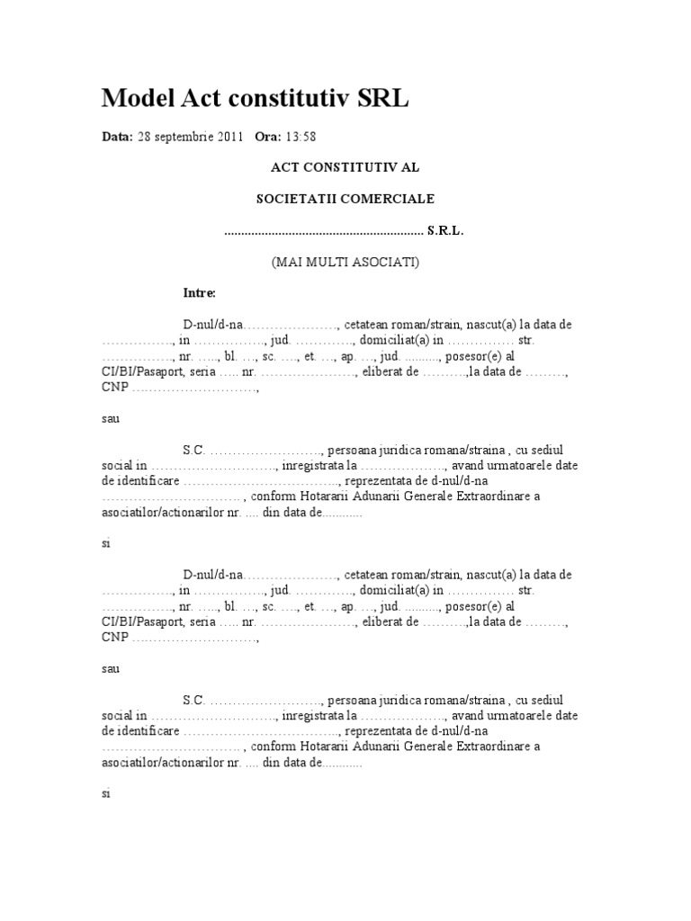 Model Act Constitutiv Srl