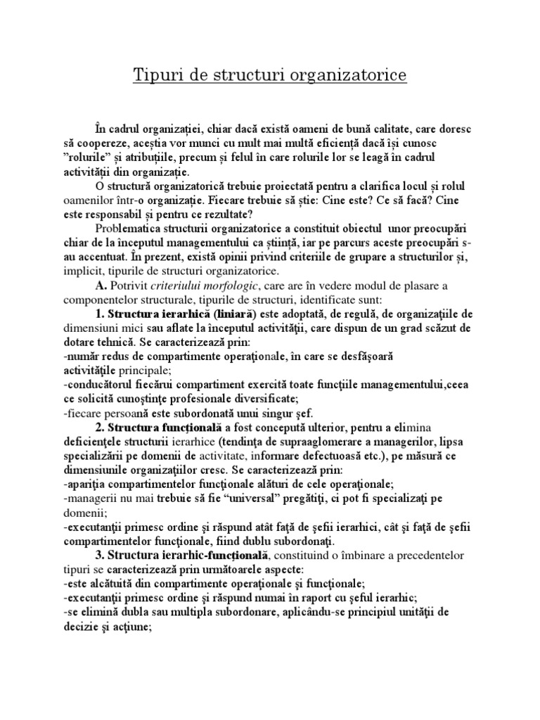 Tipuri De Structuri Organizatorice Referat