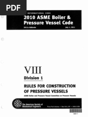Asme Bpvc 2010 Viii Division 1 Rules For Construction Of Pressure Vessels 2011a Addenda Components Industrial Processes